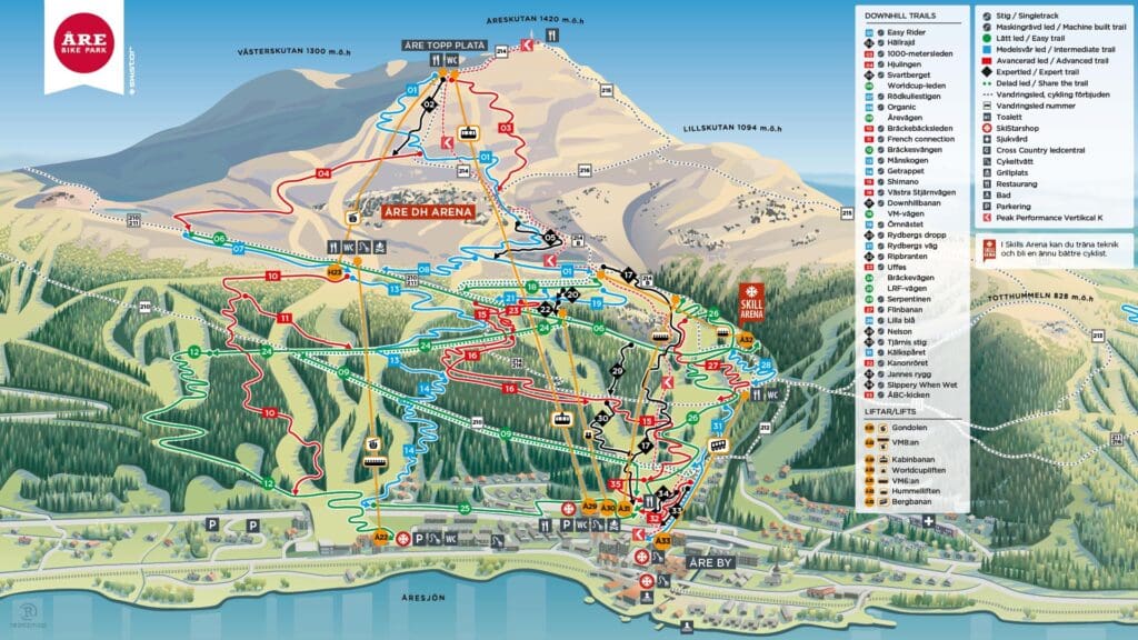 Upptäck 7 gröna, 11 blåa, 11 röda och 10 svarta leder som passar alla cyklister.