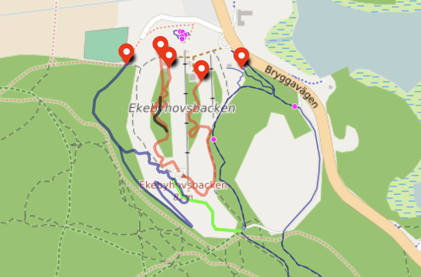 Anläggningen på Ekebyhovsbacken bjuder in till fin Enduro för alla nivåer av cyklister.